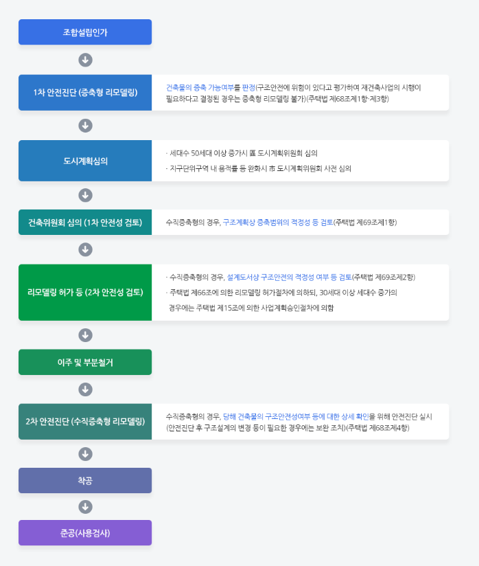 - 기존 건물의 외관을 바꾸지 않으므로, 재건축보다 훨씬 짧은 시간 안에 완료할 수 있습니다.
